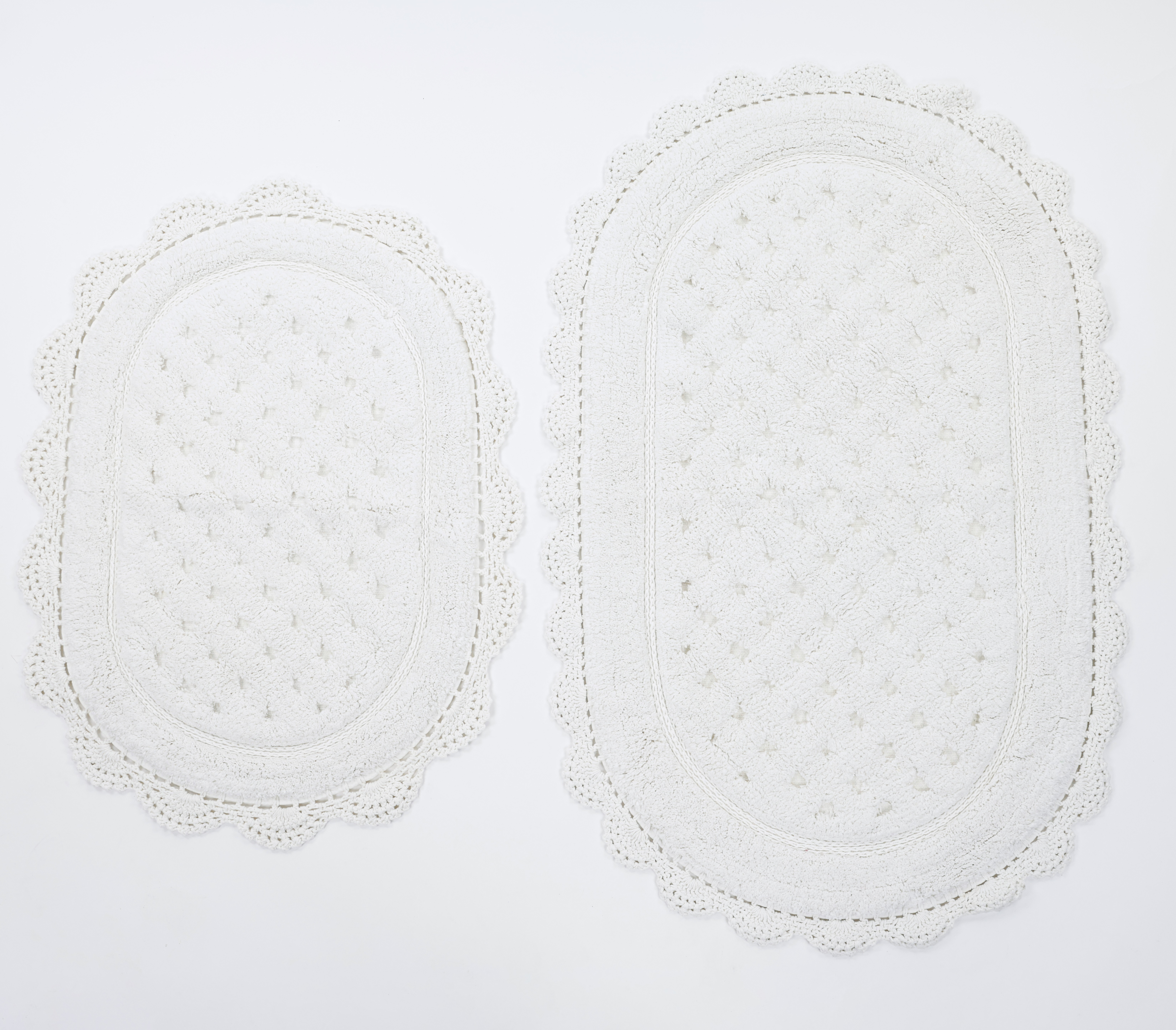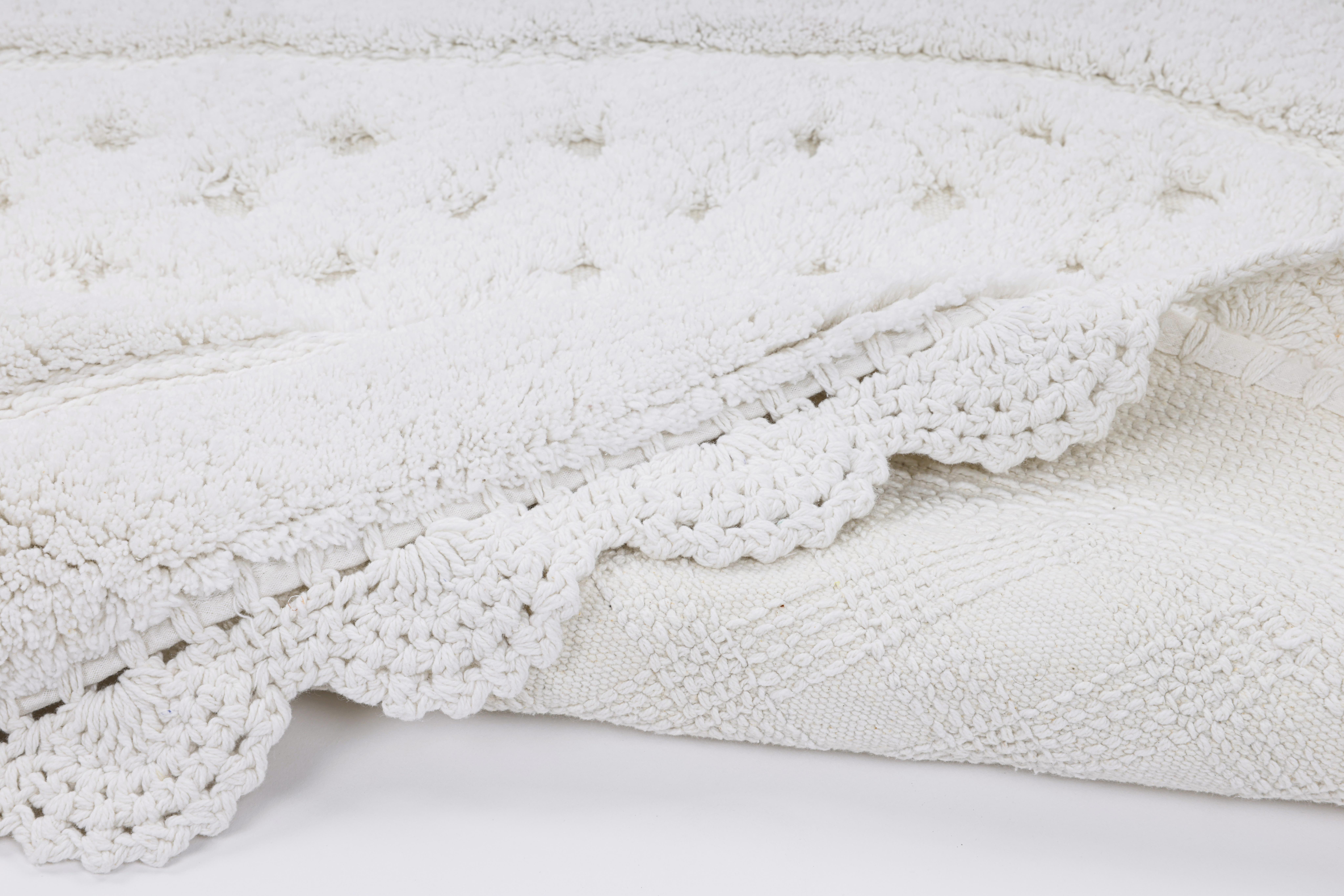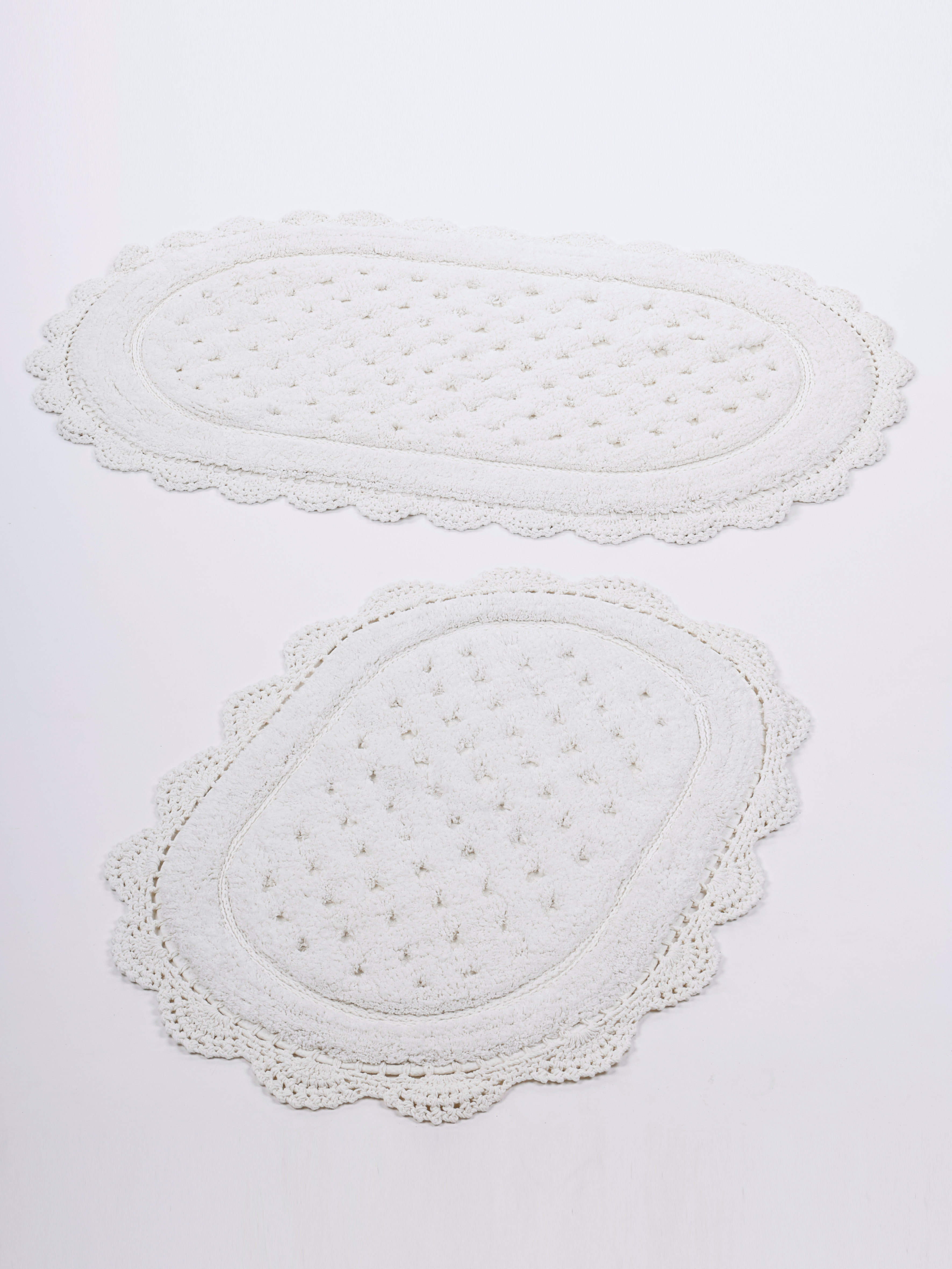 КИМБЕРЛИ - мягкая линия комфорта под вашими ногами. Коврики из 100% Индийского хлопка со стриженным, плотным ворсом Саксон Cotton Saxon . Полотно украшено рельефными точками, внутри плотной махры - это придает легкий массажный эффект. Рисунок точки обрамляет овал в три линии плетения косой. Отделка кружевом Фризе Cotton Fris? изящно собирает форму сохраняя эстетику дизайна. Коврики КИМБЕРЛИ украсят любой уголок вашего дома. В ванной — чистота и свежесть: хлопковая основа не скользит, хорошо впитывает влагу и быстро сохнет, сохраняя форму и цвет. В детской комнате - уют и забота для вашего малыша: натуральная, мягкая гипоаллергенная основа у кровати и в игровой зоне. Для питомца — личное пространство для идеального сна и игр.  Цветовая палитра представлена в спокойных природных оттенках: • Кокосовый — светлый, тёплый оттенок, создающий ощущение чистоты и естественного спокойствия.• Мокко —  глубокий кофейный тон с мягким теплом, подчёркивающий текстуру коврика. Комплектация и размеры Комплекты из двух ковриков: • 45?60 и 50?80  • 50?70 и 60?100 Штучно: • 50?80 • 60?100 Коврики КИМБЕРЛИ наполнят дом тактильным комфортом и ощущением заботы. Сделано с любовью KAZANOV.A.