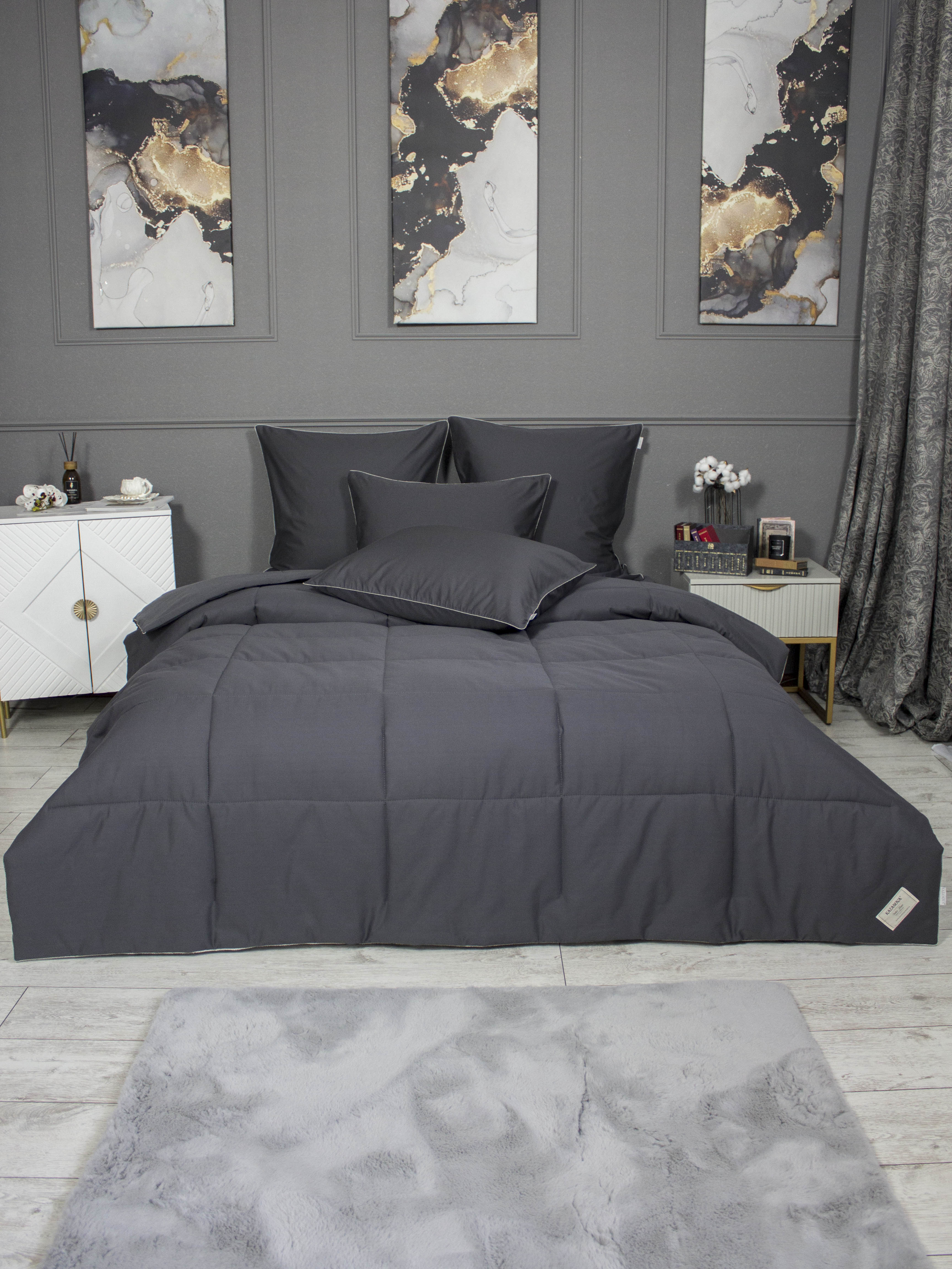 Состав: 100% Эковолокно микрогель - одеяло наполнитель; 100% Хлопок - одеяло чехол; 100% Хлопок - нав, прост