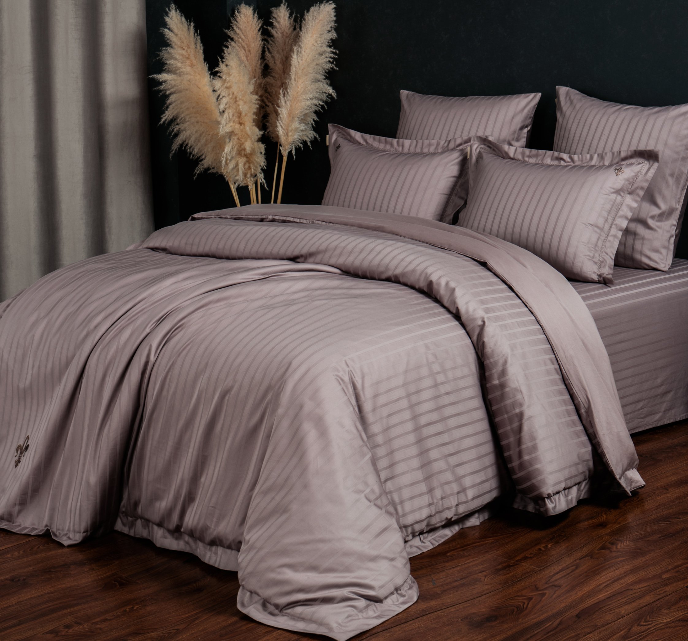 Состав: 100% Египет.хлопок страйп/сатин - пододеяльник и наволочки;100% Египет.хлопок страйп - простынь